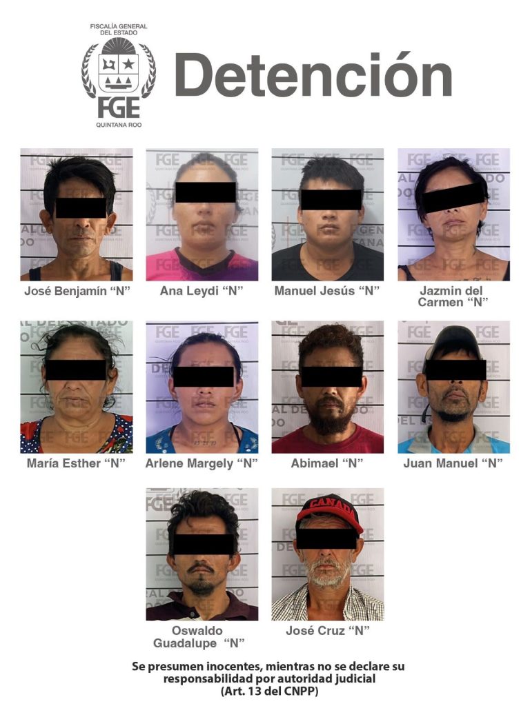 Othón P. Blanco.- La Fiscalía General del Estado da a conocer que, en colaboración de las secretarias de Marina, Defensa Nacional y Seguridad Ciudadana Municipal, Policías de Investigación cumplimentaron tres órdenes de cateo giradas por el órgano jurisdiccional, en los municipios de Othón P. Blanco y Tulum, con resultados positivos en la localización de posibles narcóticos, así como la detención de 10 personas probablemente relacionadas en hechos constitutivos de delitos contra la salud en su modalidad de narcomenudeo.