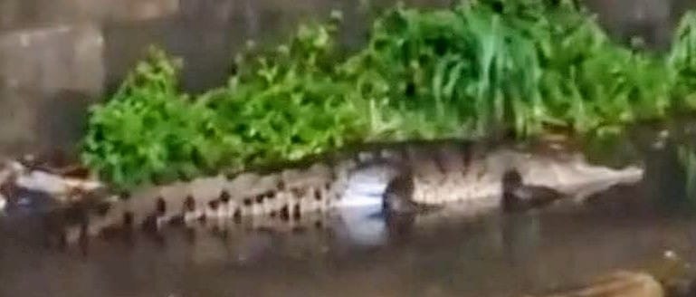El avistamiento se registró pasada la medianoche cerca de una zona de manglar, donde aparentemente este reptil salió, en plena lluvia.