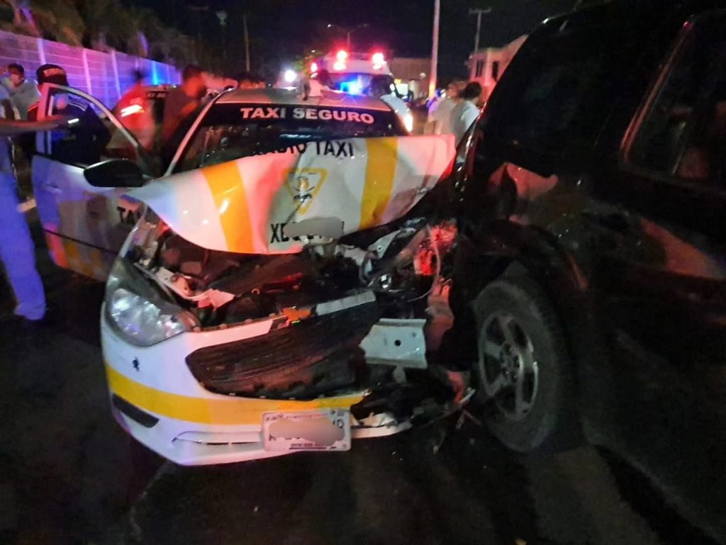 Chetumal.- Un total de siete lesionados fue el saldo que dejó la noche de este miércoles un aparatoso choque entre dos vehículos en la carretera Calderitas-Luis Echeverría.